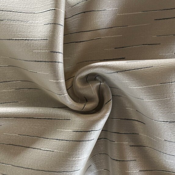 MATO entfaltet seinen Reiz in feinen Nuancen. Auf einem zart schimmernden Fond zeichnen sich horizontale Linien ab, die wie ein feines Netz über die Oberfläche gelegt sind und das Farbspiel dezent akzentuieren. Der Untergrund lebt vom leichten Glanz des flottierend aufliegenden Webgarns, das eine lebendige Wellentextur auf der Oberfläche bildet. Jede Bewegung, jeder Lichtwechsel offenbart neue Facetten des feinfädigen Jacquardgewebes und intensiviert die Wirkung der 14 eleganten Kolorits. Minimalismus wird hier zur sinnlichen Erfahrung – ein Stoff für Kenner, die Wert auf feine Details und raffinierte Materialität legen.