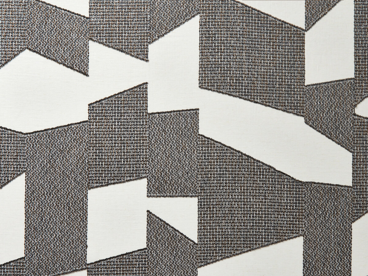 Trapezförmige strukturierte Flächen formieren sich bei diesem halbtransparenten Scherli-Gewebe zu einem großzügigen Allover-Design.