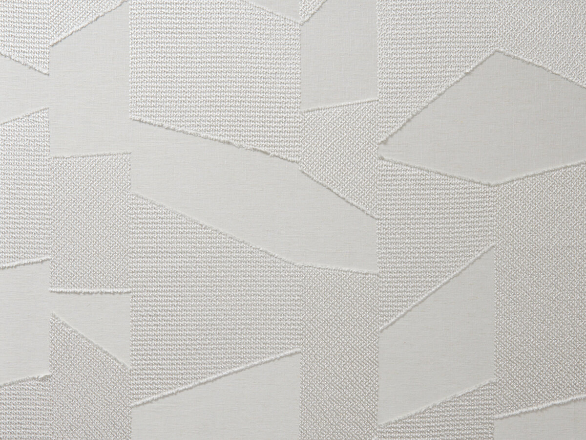 Trapezförmige strukturierte Flächen formieren sich bei diesem halbtransparenten Scherli-Gewebe zu einem  großzügigen Allover-Design.