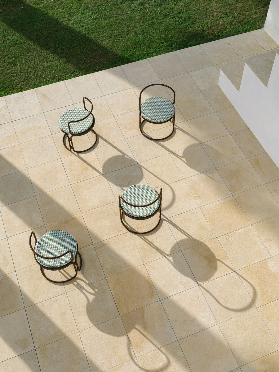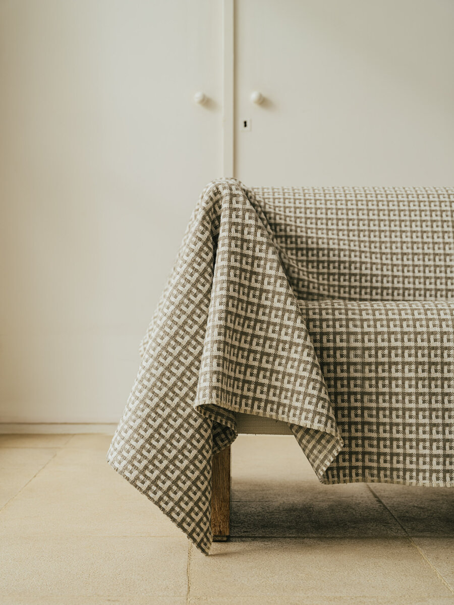 Das Flechtmuster von NICE spielt mit kreuz und quer miteinander verwobenen Garnen in feinen Kontrasten und verströmt Bistro-Charme mit Feinsinn und Charakter.