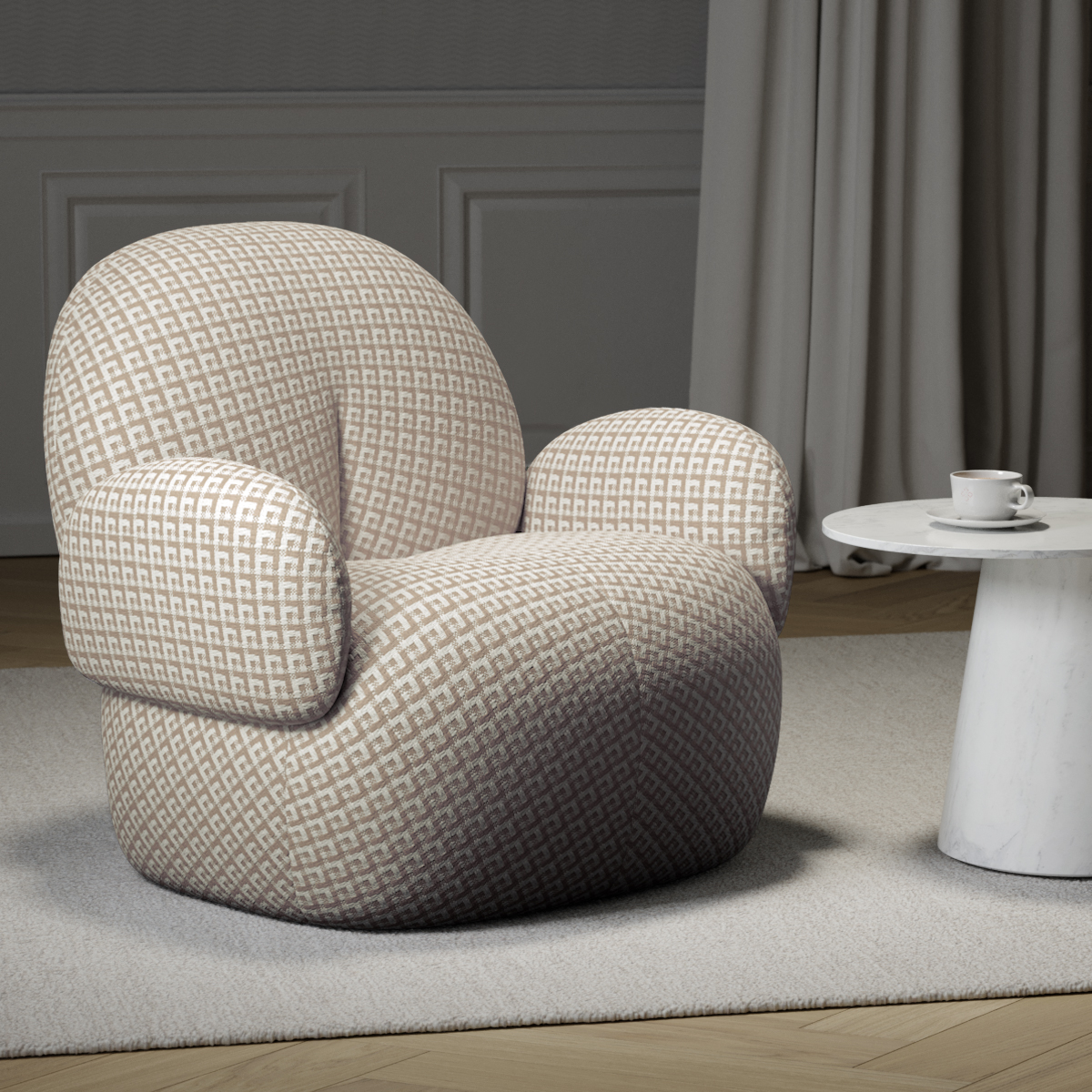 Das Flechtmuster von NICE spielt mit kreuz und quer miteinander verwobenen Garnen in feinen Kontrasten und verströmt Bistro-Charme mit Feinsinn und Charakter.