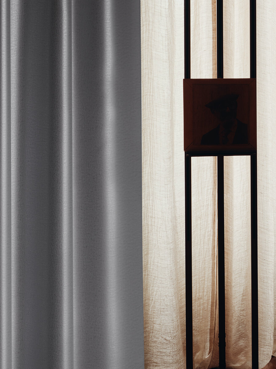 Der innovative Blackout-Vorhang besticht durch seine zeitgenössische Klarheit und moderne Farbpalette. Das beidseitig verwendbare Doppelgewebe verdunkelt den Raum bei lückenloser Fensterabdeckung zu 100 %, dank einer inliegenden unsichtbaren Spezialbeschichtung. Vorder- und Rückseite sind identisch, was die fein und dicht gewebte Oberfläche angeht, variieren jedoch leicht im Farbton. Dieser raffinierte Double-Face-Effekt eröffnet vielfältige Gestaltungsmöglichkeiten für individuelle Farbkonzepte. NOCTURNE eignet sich exzellent für Fensterdekorationen, aber auch für raumteilende Lösungen oder beidseitig einsehbare Glasfassaden.