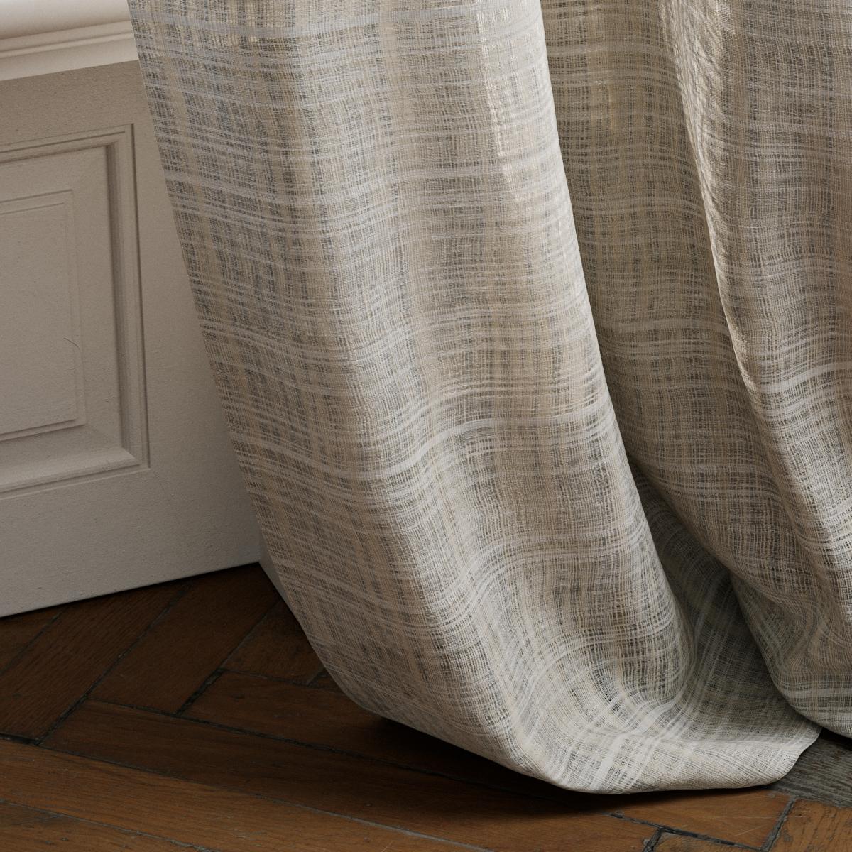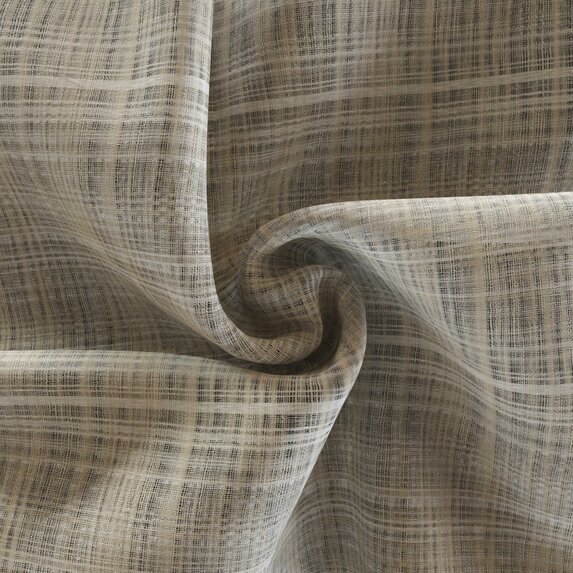 Ein zurückhaltender Stoff, der Räume mit authentischem Charakter erfüllt. Das raumhohe Karo-Gewebe spielt mit dem Wechsel von Transparenz und Dichte und erzeugt so eine textile Graphik von großer Ruhe und Präzision. Unterschiedlich starke Garne und variierende Webdichten formen ein feines Raster, das an die Schraffuren einer Zeichnung erinnert – lebendig, natürlich, ungekünstelt. Die leichte Unregelmäßigkeit der Effektgarne verleiht dem Gewebe seine unverwechselbare Handschrift: ein spannendes Wechselspiel von Linie und Fläche, von Handwerk und Leichtigkeit.