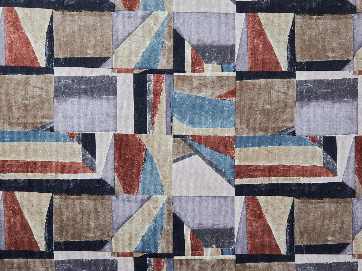 Als Vorlage für diesen Digitaldruck dienten strukturierte und gefärbte Papiere, die zu einer spannungsvollen Fläche arrangiert wurden.
