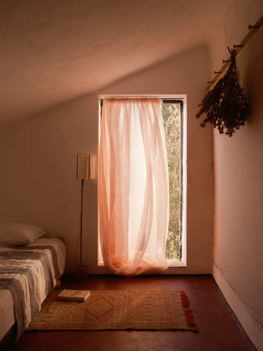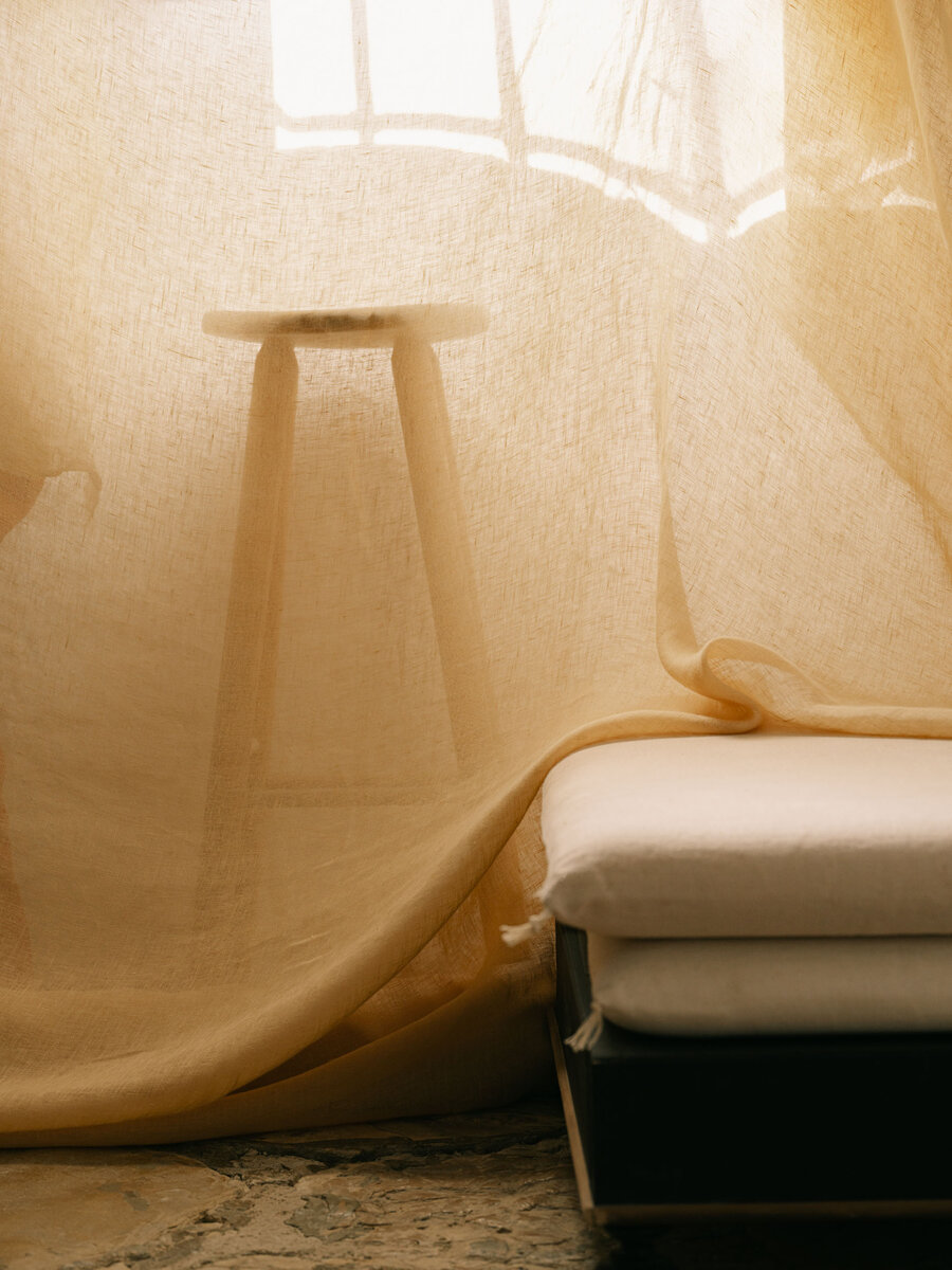 Pétale de lin schafft eine Wohlfühlathmosphäre im Haus. Im Winter ist Leinen von Natur aus isolierend und strahlt angenehme Wärme aus. Im Sommer ist es atmungsaktiv und sorgt für Frische. Seine natürlichen Eigenschaften – hypoallergen, pilzhemmend und antibakteriell – machen Leinen zu einem Plus für beruhigend wirkende Innenräume.