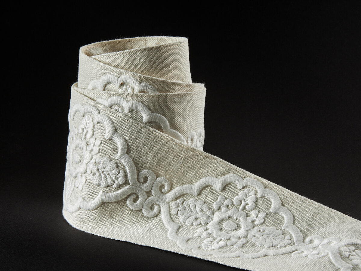 Die erhabene Stickerei des PLAZA MEDALLION besteht aus trockengesponnenem Garn in handgefertigter Optik. Benannt nach den 14 Art déco-Originalgebäuden, die in den 1930er-Jahren für das Rockefeller Plaza in Auftrag gegeben wurden, ruht dieses detailreiche Medaillon anmutig auf einem Leinen- und Baumwollstrukturgewebe.