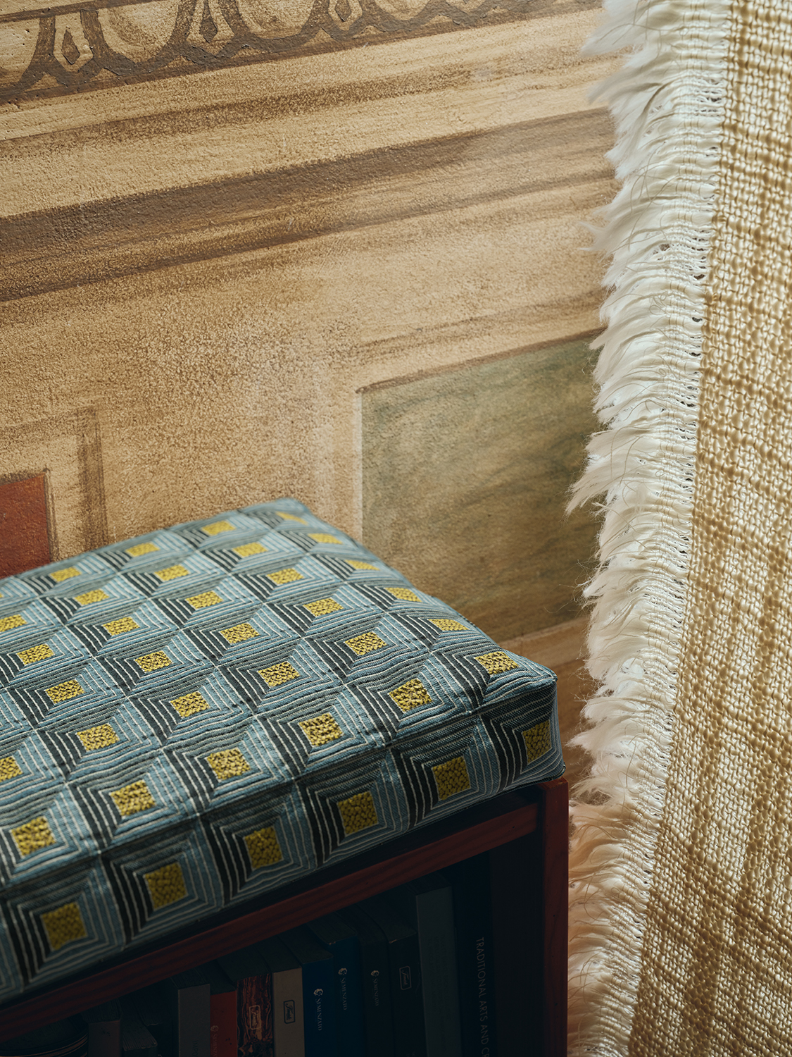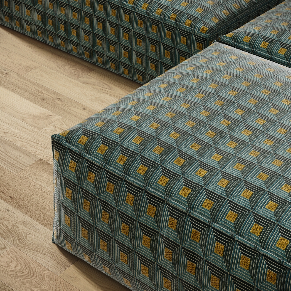 Der Bezugsstoff QUADRA spielt mit einem Klassiker der Architektur – der Kassette. Schon in der griechischen und römischen Antike war das Kassettieren von Flächen ein dekoratives Gestaltungselement, um wie zum Beispiel im römischen Pantheon der Decke mehr Volumen und Tiefe zu verleihen und die Akustik zu verbessern.