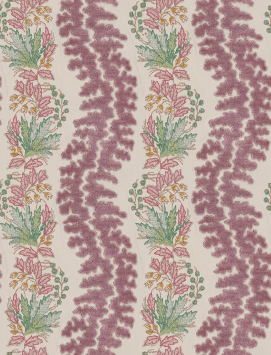 Rambling Vine ist ein raffiniertes, besticktes Jacquardgewebe aus Baumwolle mit Blättern aus Samt, die durch hübsche gestickte Pflanzengirlanden ergänzt werden. Das effektvolle Design überzeugt durch seine vielen Details, die sowohl von Weitem als auch aus der Nähe beeindrucken. Ein wunderschöner matter Ton-in-Ton-Samtflor bildet einen sanften Kontrast zur folkloristisch anmutenden Stickerei mit Glockenblumen und Gänseblümchen, die sich zwischen den Blättern verteilen. Mit einer beachtlichen Strapazierfähigkeit von 35.000 Martindale eignet sich Rambling Vine hervorragend für expressive Polsterkonzepte.
