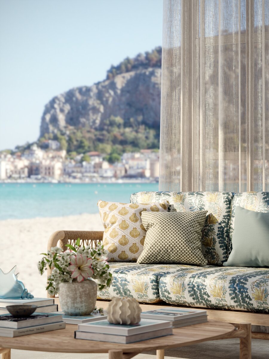 Rambling Vine ist ein raffiniertes, besticktes Jacquardgewebe aus Baumwolle mit Blättern aus Samt, die durch hübsche gestickte Pflanzengirlanden ergänzt werden. Das effektvolle Design überzeugt durch seine vielen Details, die sowohl von Weitem als auch aus der Nähe beeindrucken. Ein wunderschöner matter Ton-in-Ton-Samtflor bildet einen sanften Kontrast zur folkloristisch anmutenden Stickerei mit Glockenblumen und Gänseblümchen, die sich zwischen den Blättern verteilen. Mit einer beachtlichen Strapazierfähigkeit von 35.000 Martindale eignet sich Rambling Vine hervorragend für expressive Polsterkonzepte.