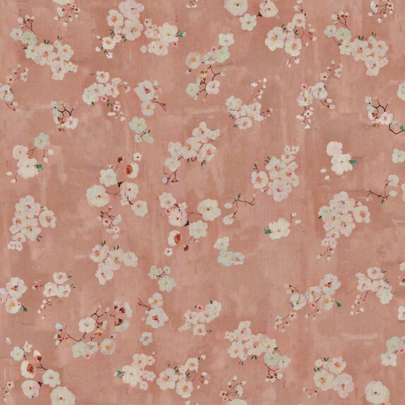 In digitalem Druck am Comer See auf einem langfaserigen 100% Leinen realisiert, tanzen die Blüten von Obstbäumen über einen farbigen Hintergrund. Die handgemalten Details sind von außergewöhnlicher Feinheit.