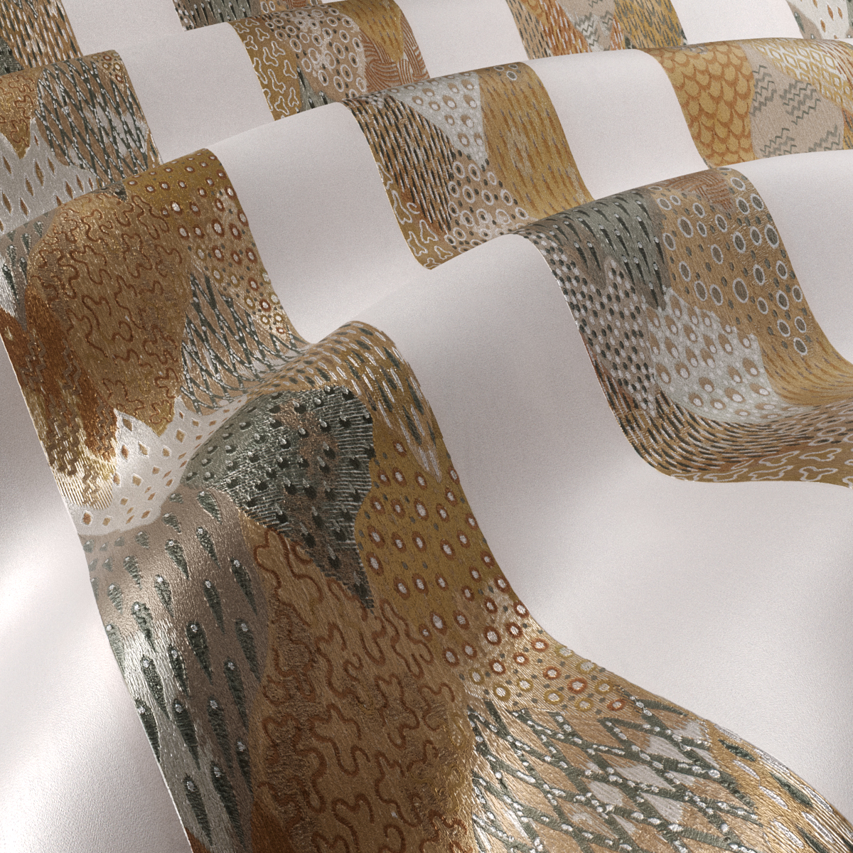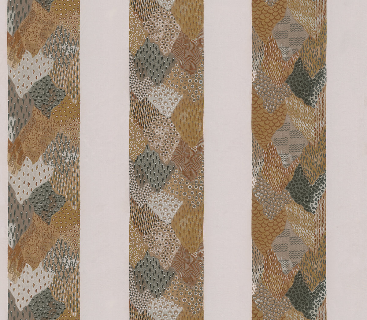 Eine moderne Inszenierung asiatischer Landschaftsdarstellungen als eindrucksvolles Blocksteifen-Design. Üppig und abstrakt zugleich. Die fantasievoll gestalteten Motive innerhalb der Blöcke wurden in feinstem Viskosegarn und in einer ungewöhnlich hohen Fadendichte auf den eleganten Baumwollsatin gestickt. ROLLING HILLS imponiert in drei Farbkompositionen.
