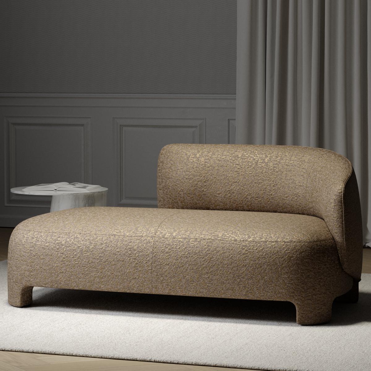 Ein Bezugsstoff, der mit seinem faszinierenden Wechselspiel von Glanz und Struktur besticht. Auf dem edlen Satin-Grund entfaltet sich eine feine Allover-Textur aus mattem Bouclé-Garn, die dem Gewebe Tiefe und Lebendigkeit verleiht. Das Jacquard-Muster wirkt fast wie ein Relief, subtil und doch ausdrucksstark, und schafft ein harmonisches Spannungsfeld zwischen glänzender Eleganz und matter Weichheit. Ob auf einem einzelnen Stuhl oder auf großzügigen Polsterflächen – der Stoff verwandelt jedes Möbelstück in ein stilvolles Statement. RYTHM DELIGHT spielt charmant mit Licht und Schatten und schenkt Innenräumen eine feinsinnige, unverwechselbare Präsenz, die sowohl zurückhaltend als auch bemerkenswert ist.