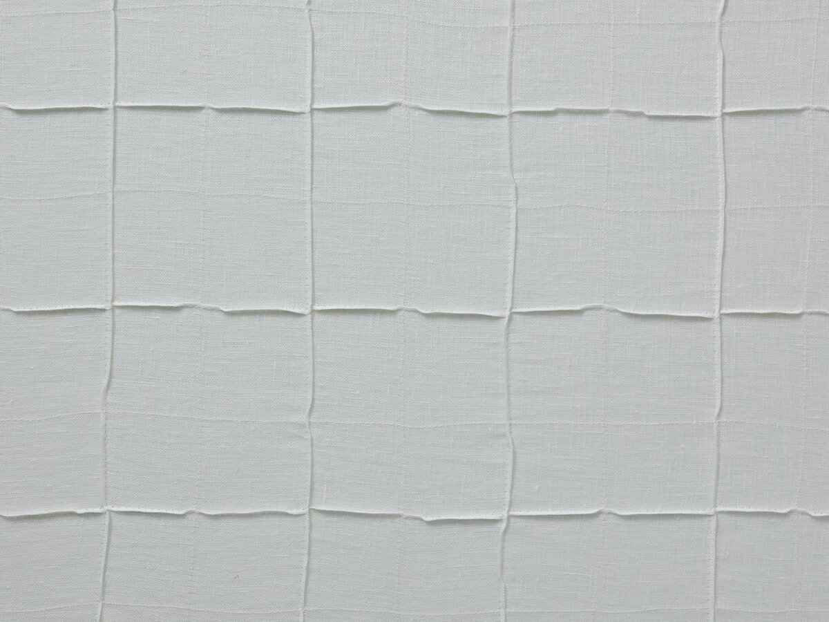 SAINT KITTS ist ein zwangloser, von Natur aus transparenter Gardinenstoff in einer luftigen Qualität, inspiriert von der gleichnamigen Insel inmitten der westindischen Inselgruppe. Die handgeführten Steppnähte bilden die Biesenkarrees, die von erfahrenen Kunsthandwerkern in Indien auf den Leinengrund aufgebracht werden. Dieses zarte Leinen ist in einer Auswahl von vier klaren Farben – Elfenbein, Creme, Natur und Aqua – erhältlich und extrem weich im Griff.