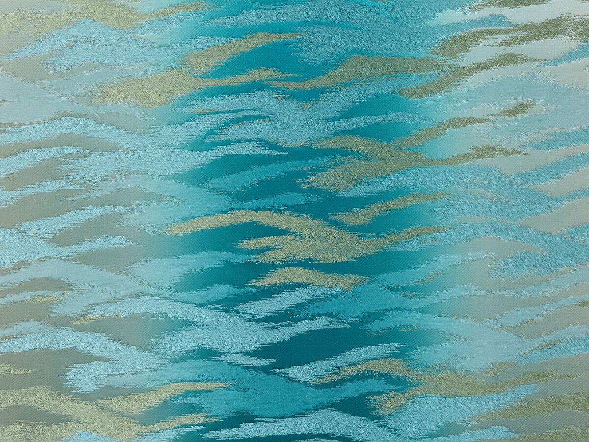 SEASCAPE ist inspiriert von der Reflexion des Himmels auf einer Wasseroberfläche. Durch den digitalen Farbverlauf variiert das gewebte Wellen-Design, ebenso wie sein Vorbild, von zart bis leuchtend schillernd.