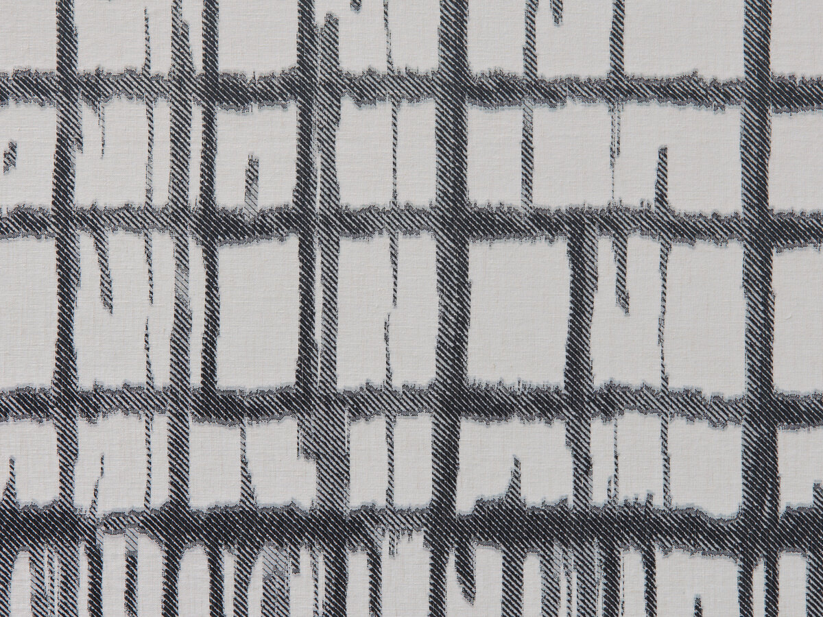 Der Sockel in der unteren Hälfte dieses Dekorationsstoffs zeigt eine handgezeichnete, gitterartige Geometrie, die sich spannungsvoll nach oben hin auflöst. Erzeugt durch die Scherli-Technik, erscheint dabei das Design mithilfe einer handwerklichen Jacquard-Struktur im Wechsel mit dem unifarbenen, trockenen Hintergrund, der sich nach oben als Fläche fortsetzt.