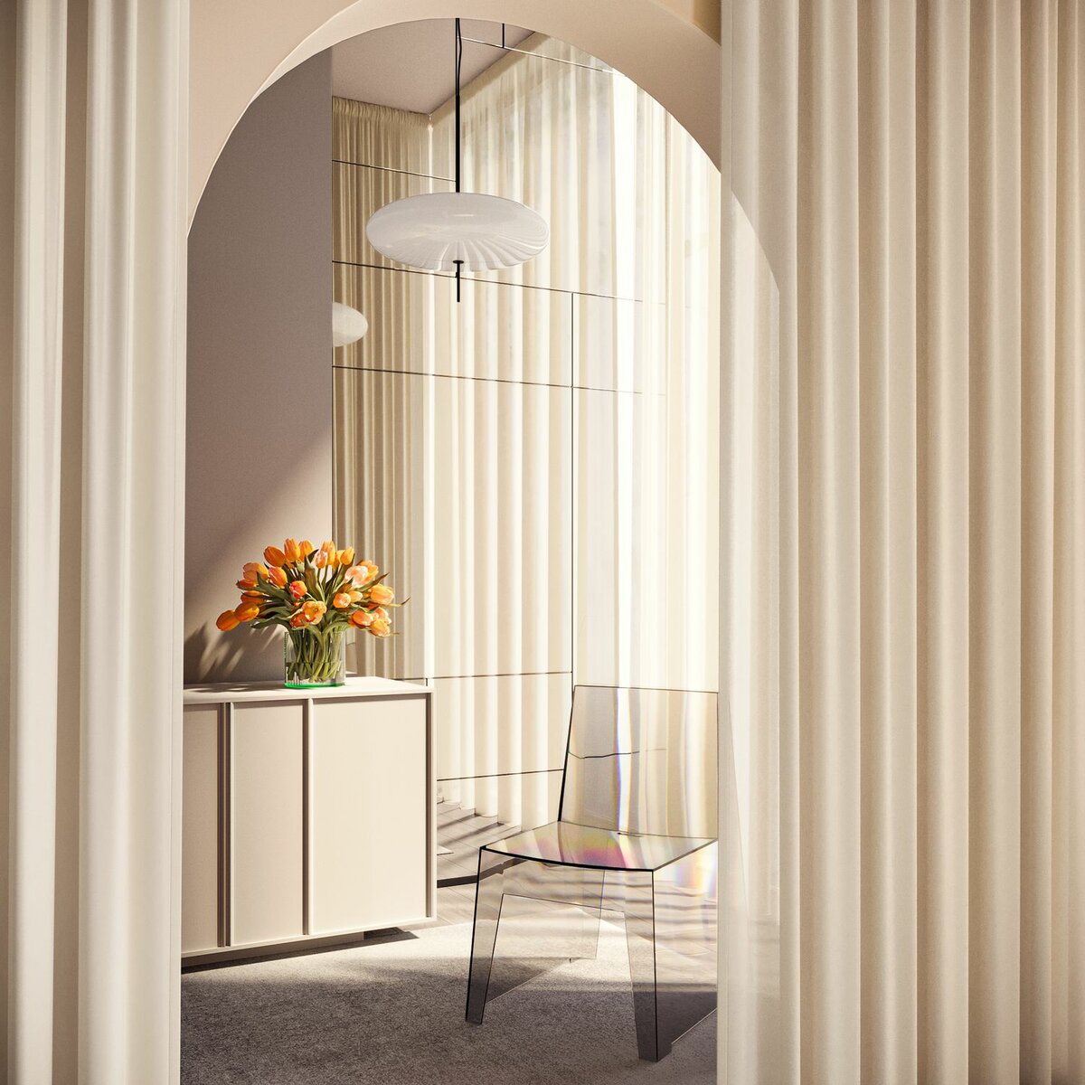 Silky Sorbet begeistert mit einer leichten, transparenten Struktur und einer charmanten, crash-ähnlichen Optik, die Bewegung und Natürlichkeit in jeden Raum bringt. Ideal zum legeren Drapieren und lässig mit aufliegendem Saum. Fließend und fein, mit einem zarten, femininen Auftritt, bleibt es mit Silky Sorbet unprätentiös und modern im Look. Mit recycelten Fasern gefertigt und in schönen Sorbet-Farben erhältlich, verbindet Silky Sorbet Nachhaltigkeit mit stilvoller Zurückhaltung.