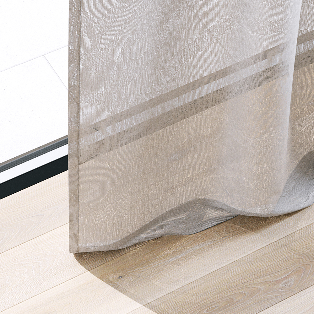 Modernität und Eleganz entfalten sich in der Netzstruktur des Scherlis SIMPLICITY. Das harmonische Wechselspiel von offenen und dichteren Netzpartien erzeugt edle Zwischentöne und lässt ein abstraktes Muster entstehen, dessen Linien organisch nach oben ranken. Naturverbunden: die Farbgebung in geerdeten Tönen.