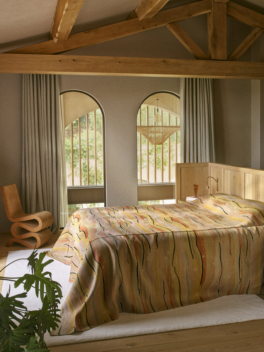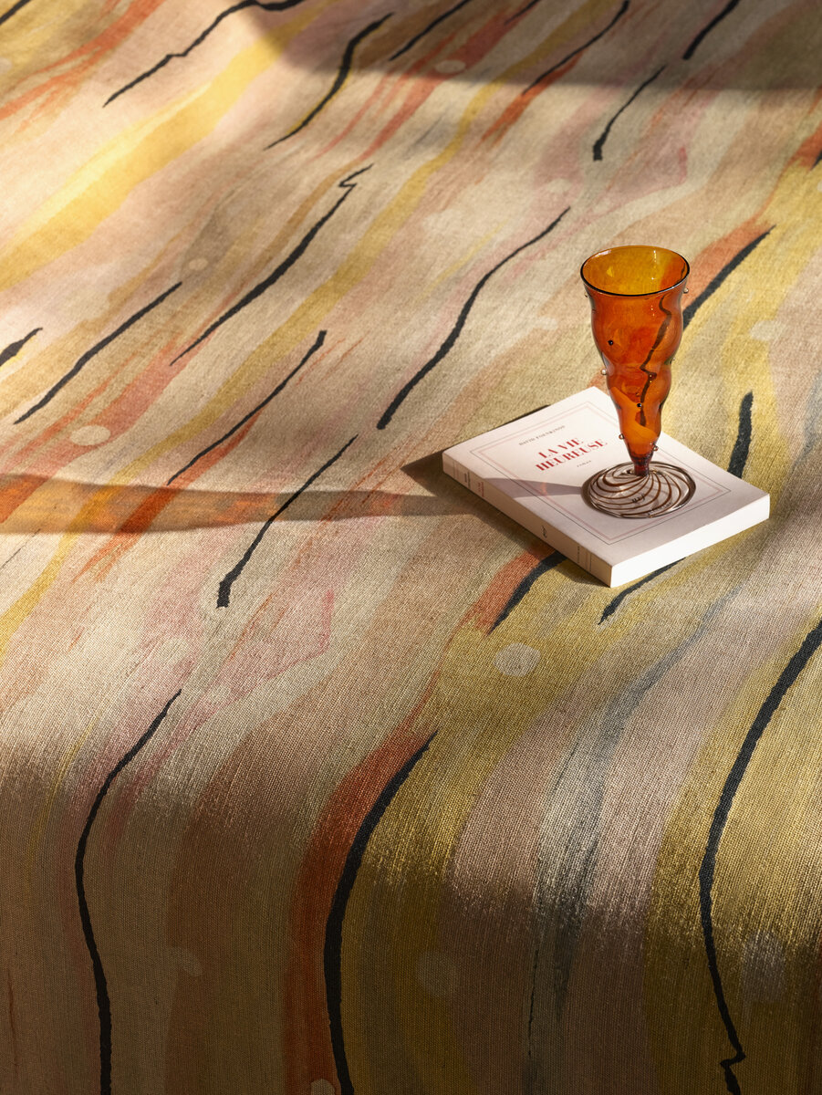 SOLAIRE ist ein Digitaldruck auf einer Basis aus Leinen und Jute, der in Italien am Ufer des Comer Sees hergestellt wird. Das handgemalte Design ist abstrakt und erinnert an die warmen Farben der Dämmerung und des Sonnenuntergangs am Ende der Welt. Die stone-washed-Finish verleiht den Farbtönen eine Patina und verleiht ihm einen trendigen Shabby-Chic-Look. Es eignet sich perfekt zum Drapieren oder Polstern ohne Einschränkungen.