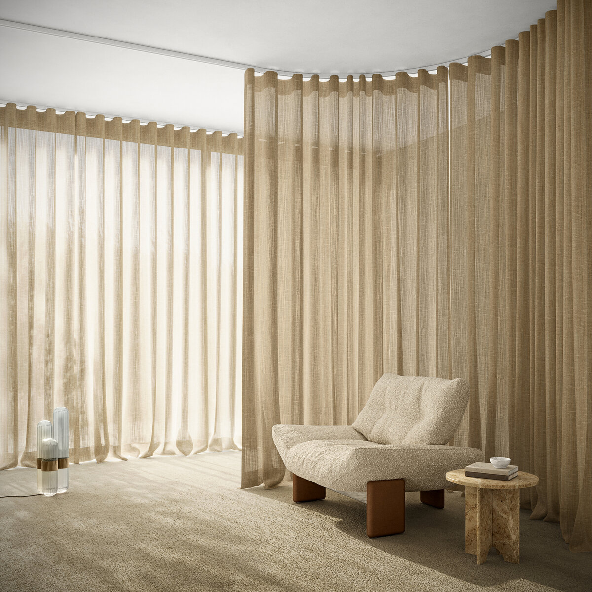Sein nachhaltiger Materialmix aus 50 % recyceltem PES macht ihn zur umweltbewussten Wahl. Die große Farbpalette von zarten Naturtönen bis hin zu warmen Akzenten lässt viel Raum für individuelle Inszenierung.