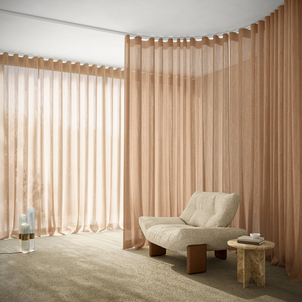 Sein nachhaltiger Materialmix aus 50 % recyceltem PES macht ihn zur umweltbewussten Wahl. Die große Farbpalette von zarten Naturtönen bis hin zu warmen Akzenten lässt viel Raum für individuelle Inszenierung.