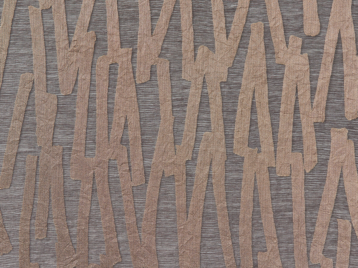Eine außergewöhnliche Grundware bildet die Basis für den Ausbrenner STROKES. Innerhalb eines transparenten Doppelgewebes bewegen sich lose fixierte Effektgarne. Die verbleibenden Bereiche des Ausbrenners muten wie kräftige, kurze Pinselstriche an, die sich harmonisch über die Fläche dieses raumhohen Artikels verteilen. Um die Lebendigkeit noch zu betonen erhält STROKES einen leichten Crash auf der Oberfläche.