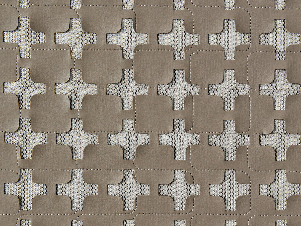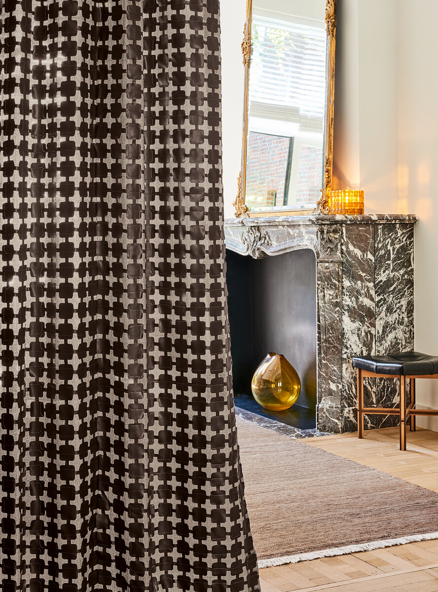 Innovative und ausdrucksstarke Interpretation eines Transparentgewebes mit angenehmer All-Over-Wirkung. Durch die Kombination des matten Fonds und den applizierten, geometrischen Motiven aus Kunstleder lässt sich dieser attraktive Artikel in jedes zeitlose Raumkonzept integrieren. STRUTTURA ist ein absoluter Eyecatcher!