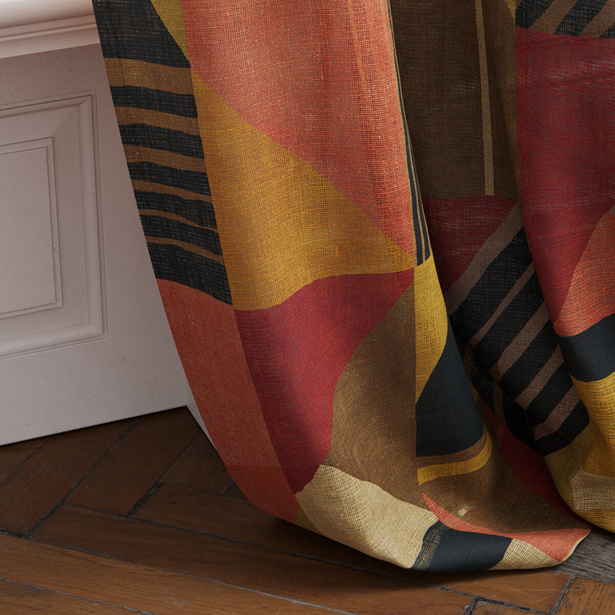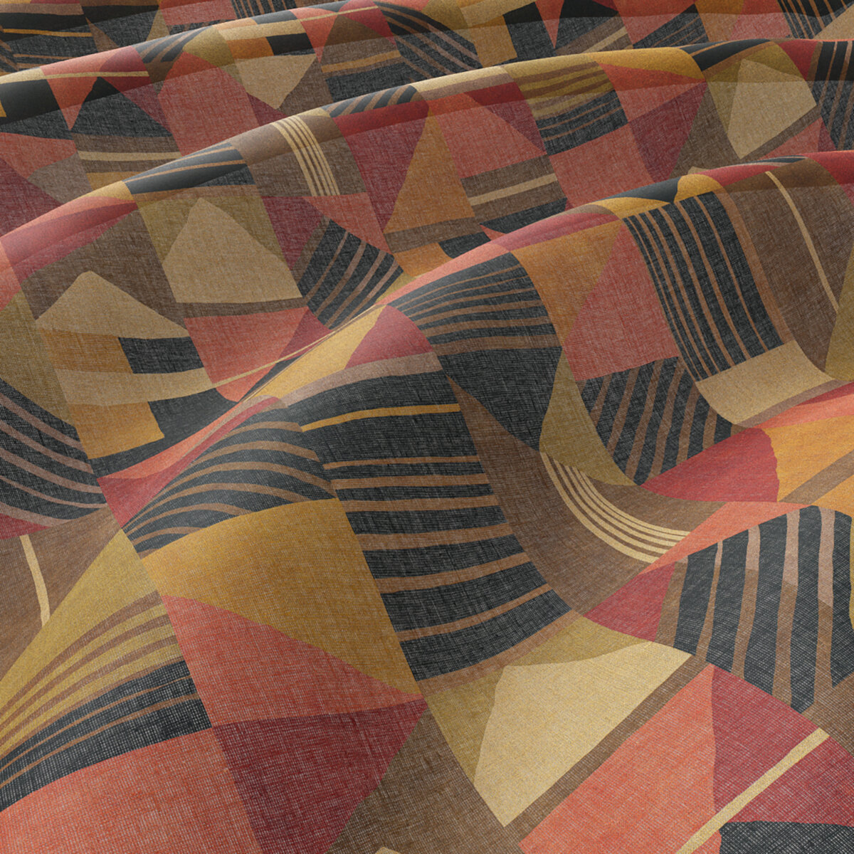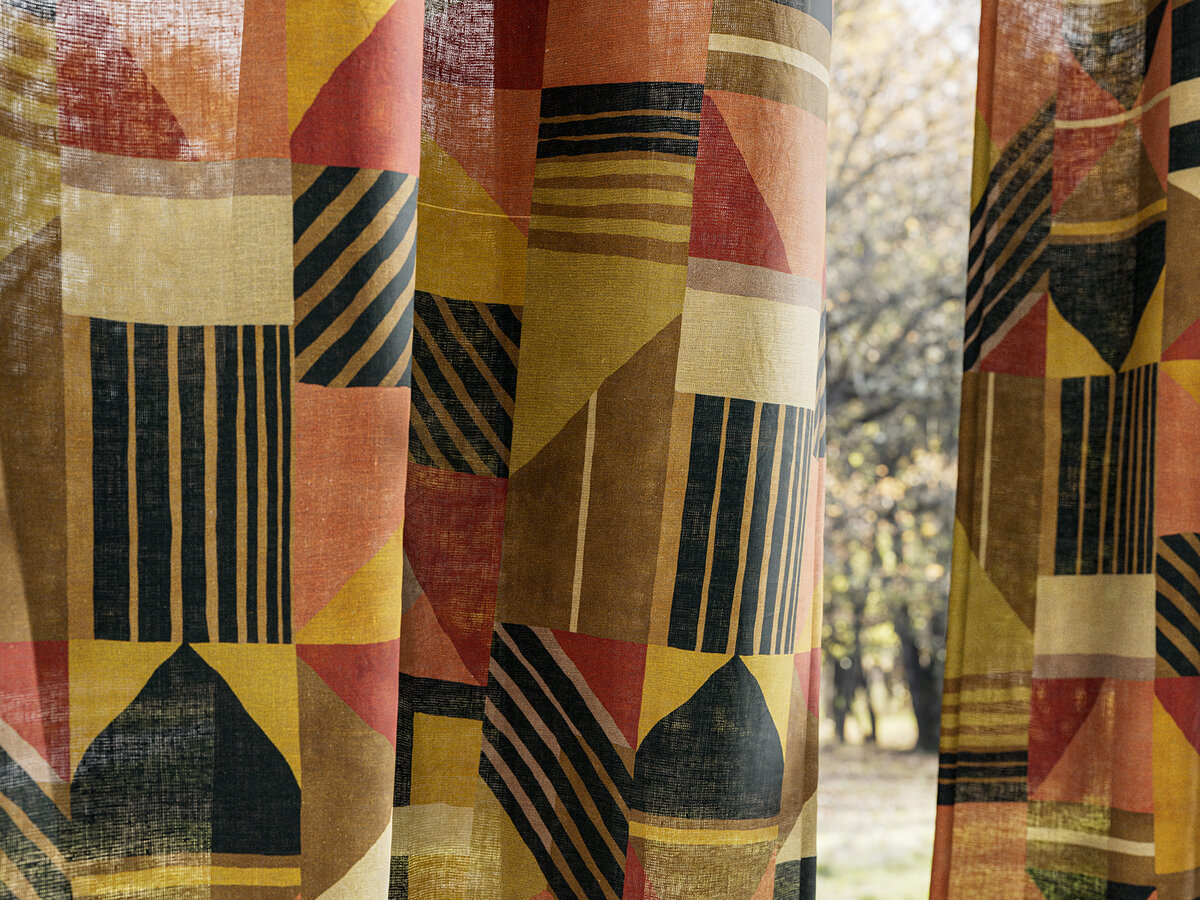 TANGARA entführt uns in eine farbenfrohe Welt der Abstraktion. Das modernistische Druckdesign auf luftigem Leinenfond präsentiert sich in frischen, leuchtenden oder erdigen Farben. Die spielerisch angeordneten geometrischen Formen vereinen sich zu einer dynamischen Komposition, die Energie und Frische ausstrahlt.