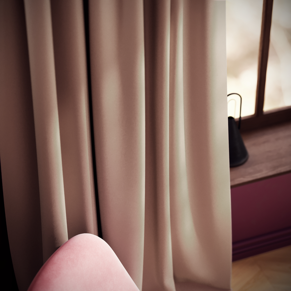 Truffle Taffeta bringt Farbe ins Zuhause. Dieser edle Taftstoff überzeugt durch seine zeitgemäße, matte Optik und einer umfangreichen Farbpalette. Von klassischen Weiß- und Cremetönen bis hin zu kräftigem Lila und Bordeaux - Truffle Taffeta bietet unzählige Möglichkeiten zur Raumgestaltung. Der moderne Taft besticht dabei durch seinen typischen Changeant-Effekt, der durch starke Farbkontraste in Kette und Schuss entsteht und je nach Licht und Perspektive die Farben in unterschiedlichen Nuancen erscheinen lässt.