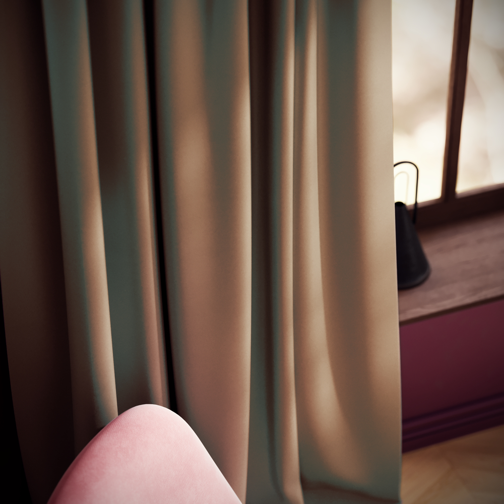 Truffle Taffeta bringt Farbe ins Zuhause. Dieser edle Taftstoff überzeugt durch seine zeitgemäße, matte Optik und einer umfangreichen Farbpalette. Von klassischen Weiß- und Cremetönen bis hin zu kräftigem Lila und Bordeaux - Truffle Taffeta bietet unzählige Möglichkeiten zur Raumgestaltung. Der moderne Taft besticht dabei durch seinen typischen Changeant-Effekt, der durch starke Farbkontraste in Kette und Schuss entsteht und je nach Licht und Perspektive die Farben in unterschiedlichen Nuancen erscheinen lässt.