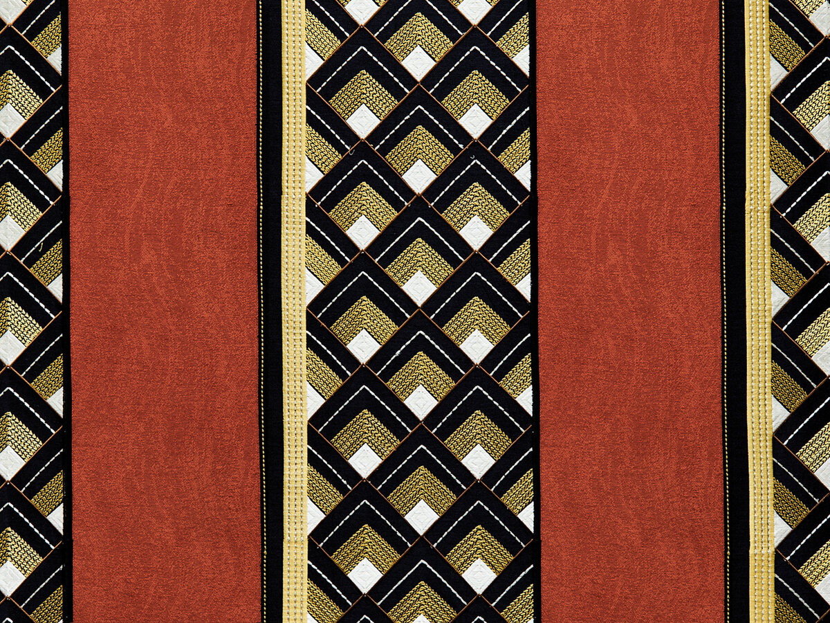 VISIONE hat sich von der Architektur der Goldenen Zwanzigerjahre inspirieren lassen. Die handwerkliche Stickerei dieses noblen Dekorationsstreifens fasziniert durch die subtile Farbigkeit und sein dreidimensionales Relief. Der elegante Changeant-Effekt des Jacquard-Fonds vervollständigt die Raffinesse und Modernität dieses anspruchsvollen Textils.