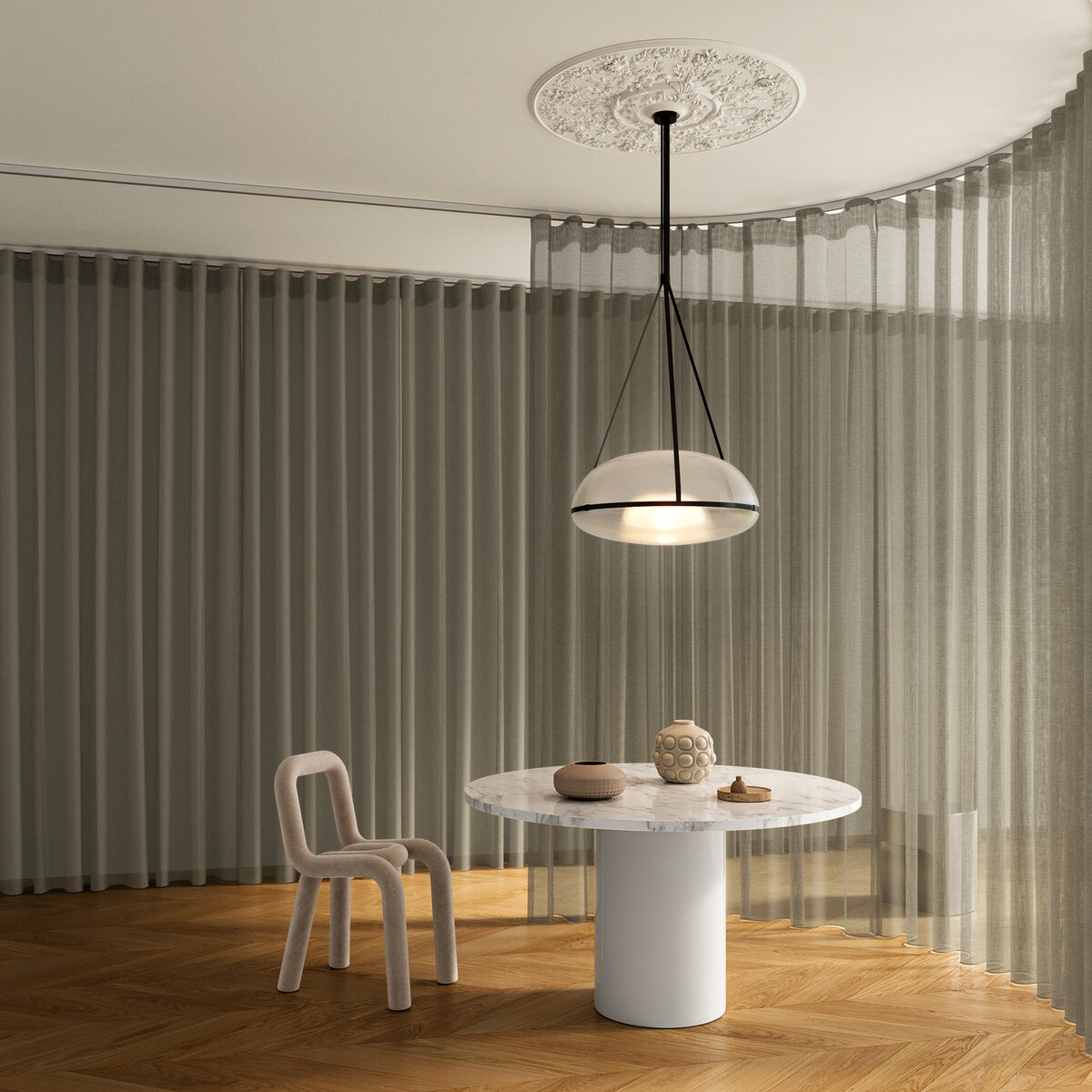 Stoffgewordene Architektur ist VITRUV. Klar in Form, Funktion und Fokus. Sein architektonischer Look in 10 trendigen Farben hängt ein Statement in jedes Interieur, ob zu Hause, im Office oder Hotel. Outstanding: VITRUV als ikonischer Raumtrenner, gerne in mehreren Layern und Farben. Hier zeigt der transparente Gitterstoff aus schwer entflammbarem und recyceltem Polyester funktionale Ästhetik. Ausprobieren wanted!