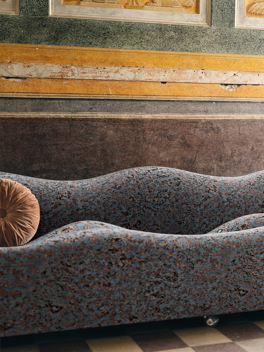 Ein hochwertiger Jacquard-Velours, der durch seine elegante Ausstrahlung und sein extravagantes und vibrierendes Farbspiel fasziniert.