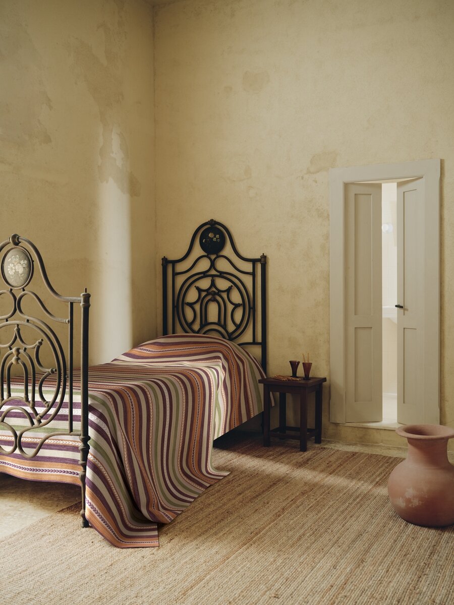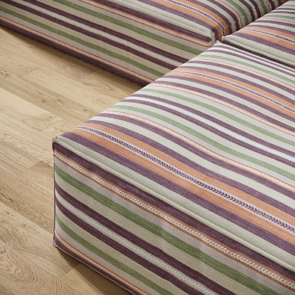 Aguayo is inspired by traditional stripes, handwoven on the high plains of Peru and Bolivia. This fabric is handcrafted from the yarn dyeing process, to the hand weaving, executed on traditional wooden looms in Kerala, India. This craftsmanship contributes to this fabric’s beauty. After weaving, excess dyes are washed out, softening the material in the process. Abrasion resistance testing by the Martindale method achieves a score of 100,000 cycles.