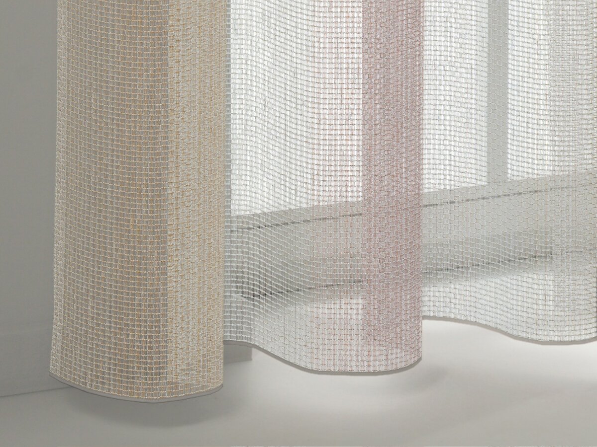 AKELA gives you a cosy atmosphere and pleasant privacy at the same time. The highly transparent leno fabric beautifies the view outside with delicate colour gradients in grey/rose, linen/ new orange, eggshell/water and taupe/ navy/lime. Wonderfully soft to the touch, easycare and crease-resistant. AKELA looks particularly casual when you let long drapes fan out at the bottom to create a puddle.