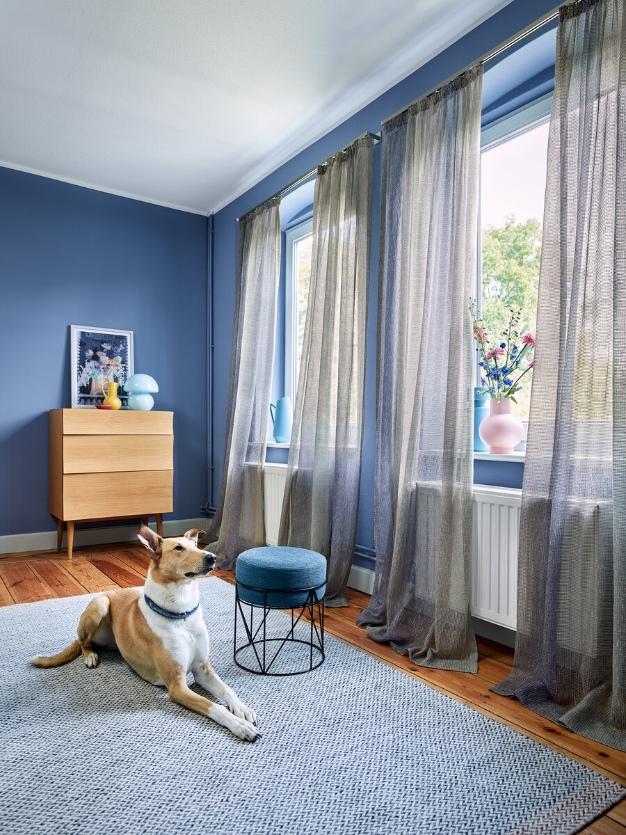 AKELA gives you a cosy atmosphere and pleasant privacy at the same time. The highly transparent leno fabric beautifies the view outside with delicate colour gradients in grey/rose, linen/ new orange, eggshell/water and taupe/ navy/lime. Wonderfully soft to the touch, easycare and crease-resistant. AKELA looks particularly casual when you let long drapes fan out at the bottom to create a puddle.