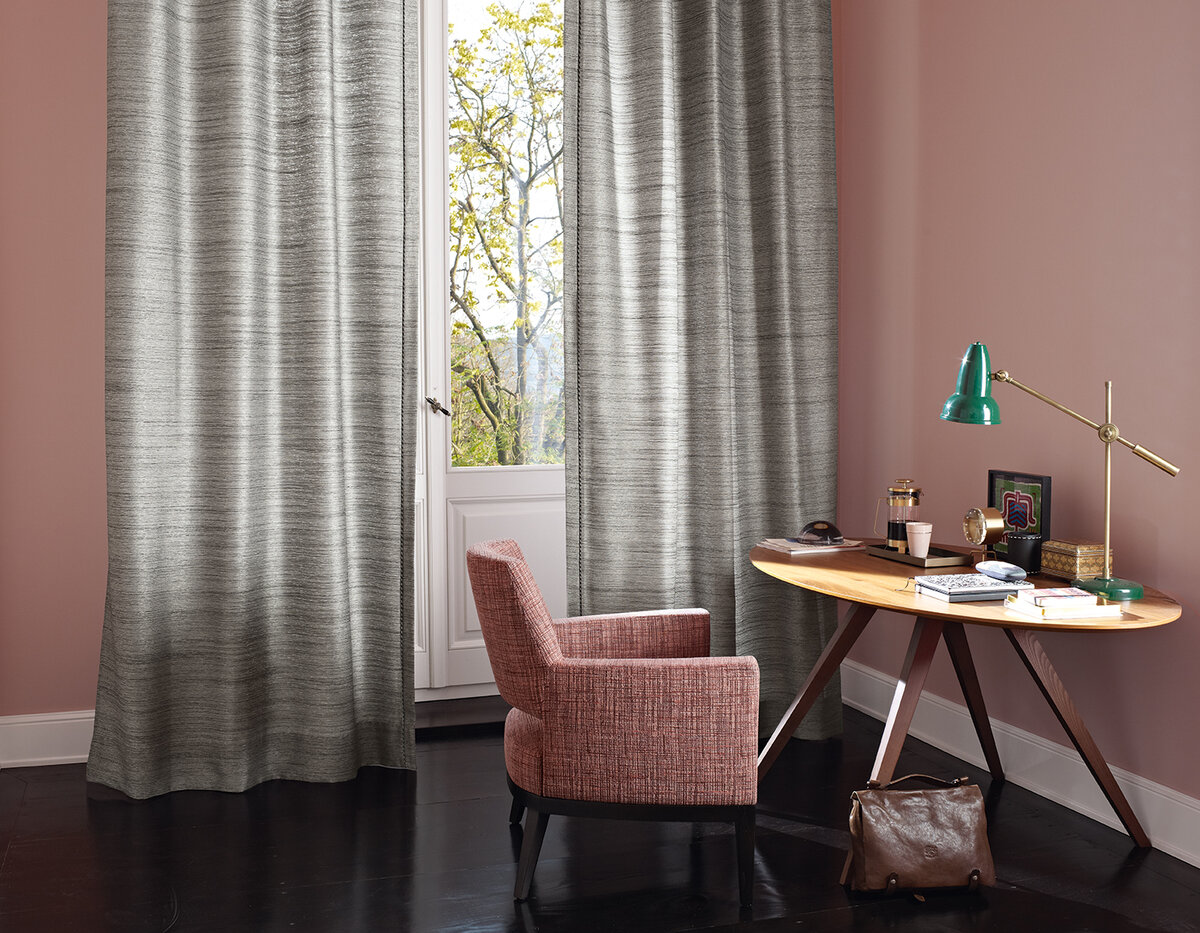 This light decorative fabric with a horizontal weave is suitable for use in private homes as well as public buildings. Woven from low-maintenance Trevira CS, its irregular Jacquard texture and matte, shimmering surface lend it a natural and elegant appearance. This look is underscored by the lively colours of the various yarn blends in its weave.