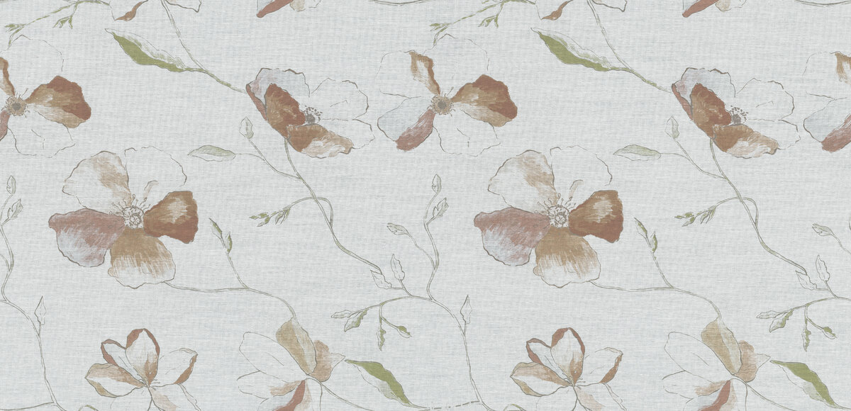 Allow your mind to wander with ANEMONE. It’s easy to lose yourself in this lavish sea of transparent flowers. Its multifaceted shades and dappled flowers are reminiscent of an oil painting, which is what makes this print so charming. Admire it in brilliant ecru/sand/rosewood, green/aqua/ yellow, blue/water/grey and lilac/pink/red. It’s simply breath-taking.
