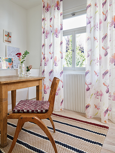 Allow your mind to wander with ANEMONE. It’s easy to lose yourself in this lavish sea of transparent flowers. Its multifaceted shades and dappled flowers are reminiscent of an oil painting, which is what makes this print so charming. Admire it in brilliant ecru/sand/rosewood, green/aqua/ yellow, blue/water/grey and lilac/pink/red. It’s simply breath-taking.