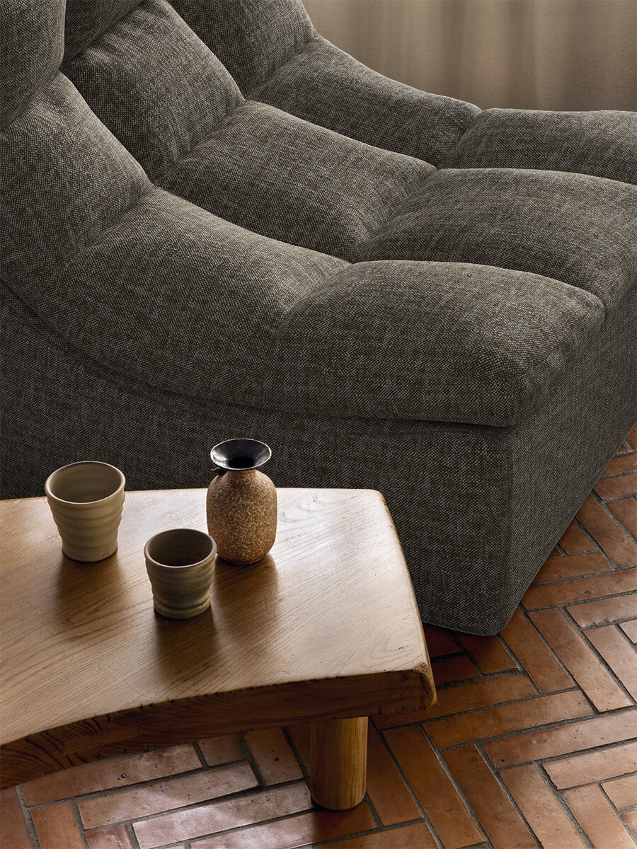 This soft but hardwearing structural fabric is best appreciated on large-scale softly upholstered furniture that emphasises its cozy nature.
