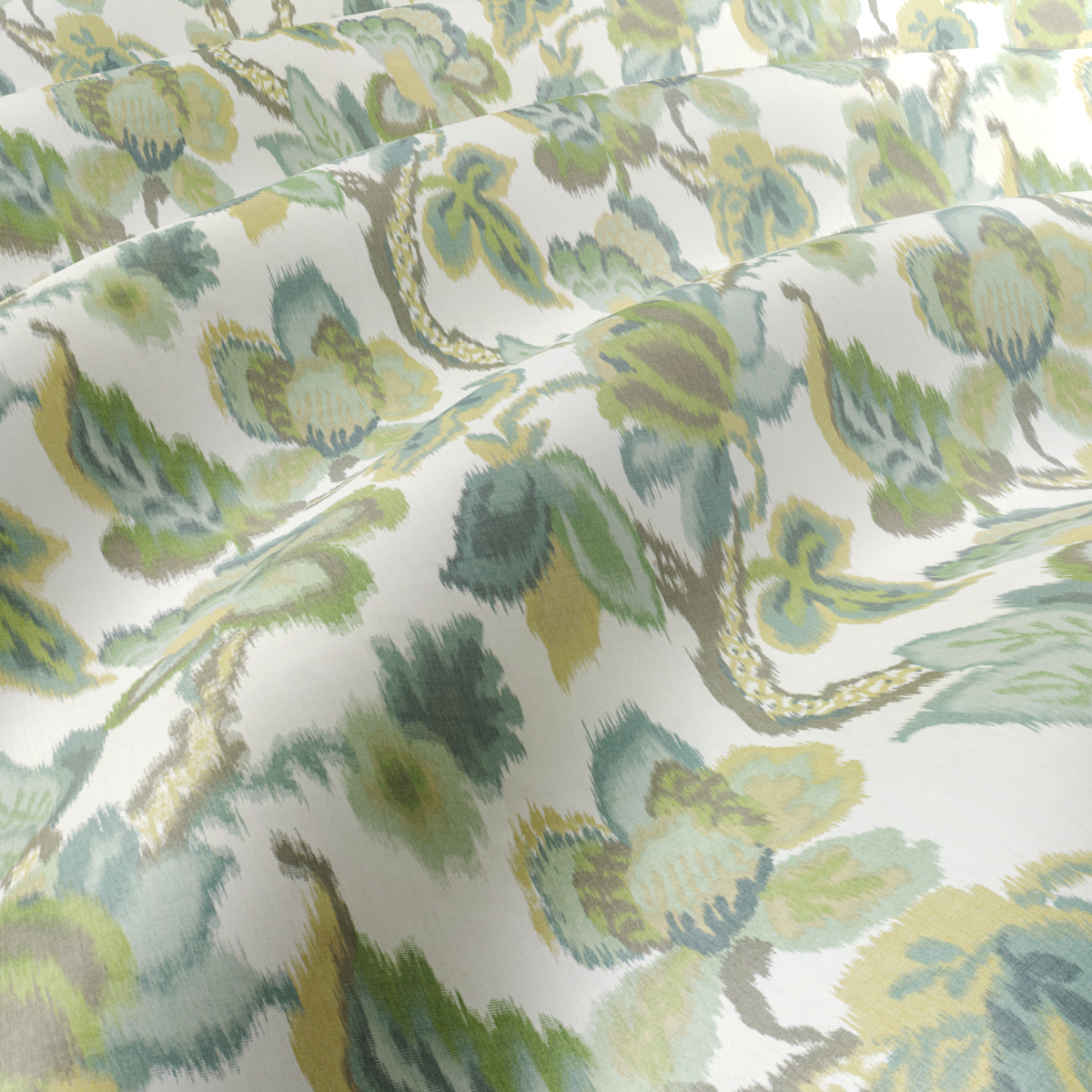 ANYA is a prime example of an increasingly rare form of textile craftsmanship. The large-format Jacobean design is already applied to the fine cotton warp before the weaving process begins. In the elaborate warp printing technique, the warp threads shift slightly in relation to each other during weaving, creating an intentionally blurred effect of the multicolored motifs. The result: a deliberately stunning decorative creation whose charm lies in its imperfection.