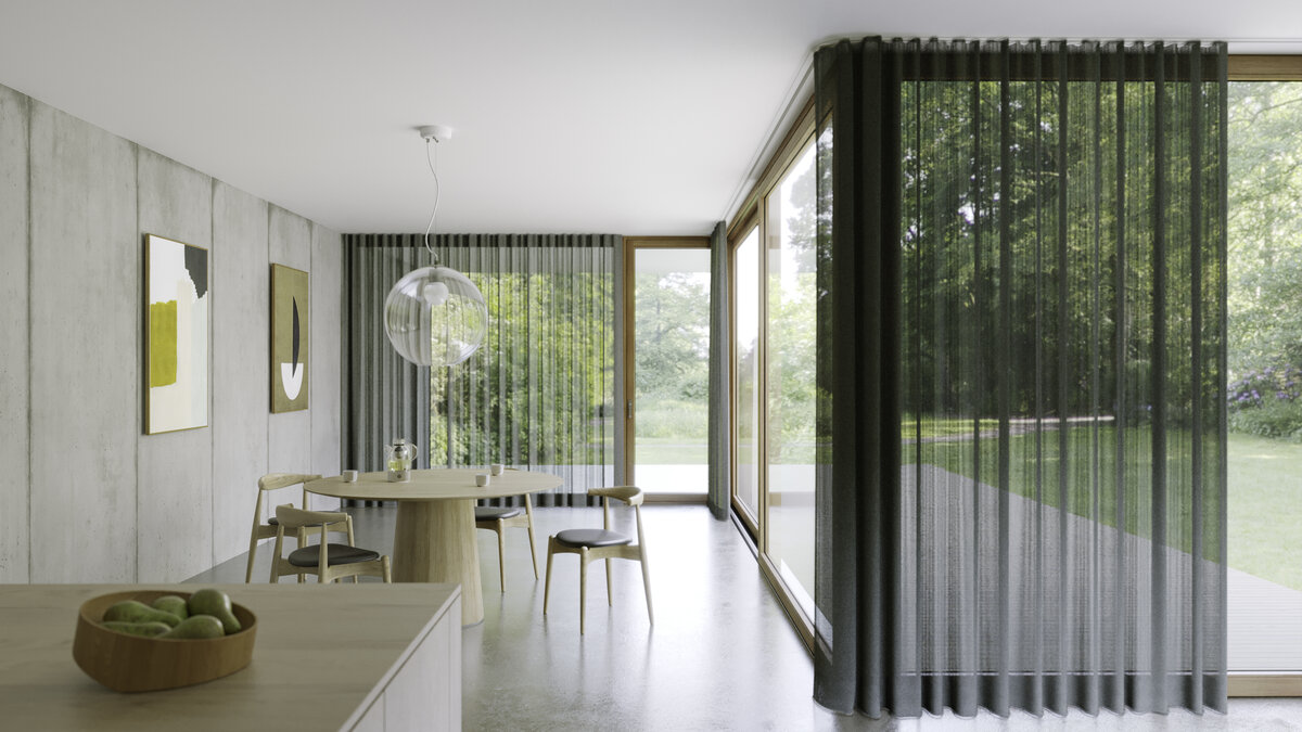 ARISE is proof that opposites do attract. The microbouclé represents elegance with modern restraint, metallic hues without over-the-top shine, providing transparency while also maintaining privacy. It’s an aesthetic that works: ARISE is easy to care for, washable at 60°C, flame retardant, floor length, lightfast and good for the environment with added recycled polyester.
