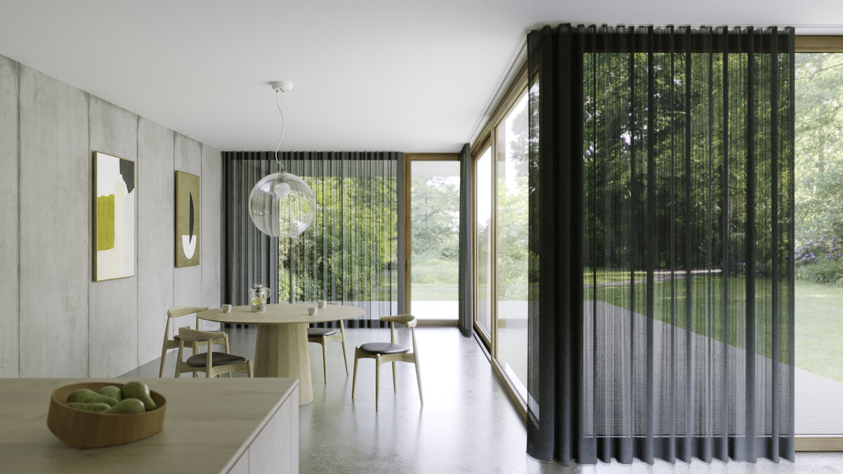ARISE is proof that opposites do attract. The microbouclé represents elegance with modern restraint, metallic hues without over-the-top shine, providing transparency while also maintaining privacy. It’s an aesthetic that works: ARISE is easy to care for, washable at 60°C, flame retardant, floor length, lightfast and good for the environment with added recycled polyester.
