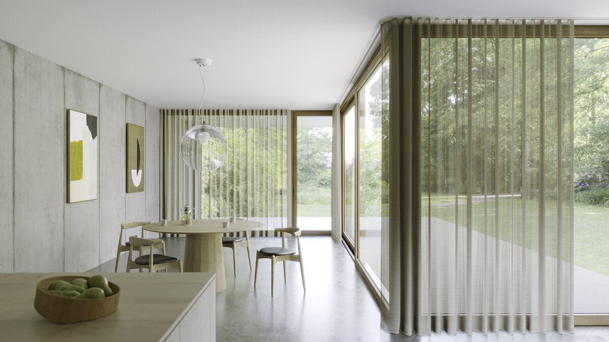 ARISE is proof that opposites do attract. The microbouclé represents elegance with modern restraint, metallic hues without over-the-top shine, providing transparency while also maintaining privacy. It’s an aesthetic that works: ARISE is easy to care for, washable at 60°C, flame retardant, floor length, lightfast and good for the environment with added recycled polyester.