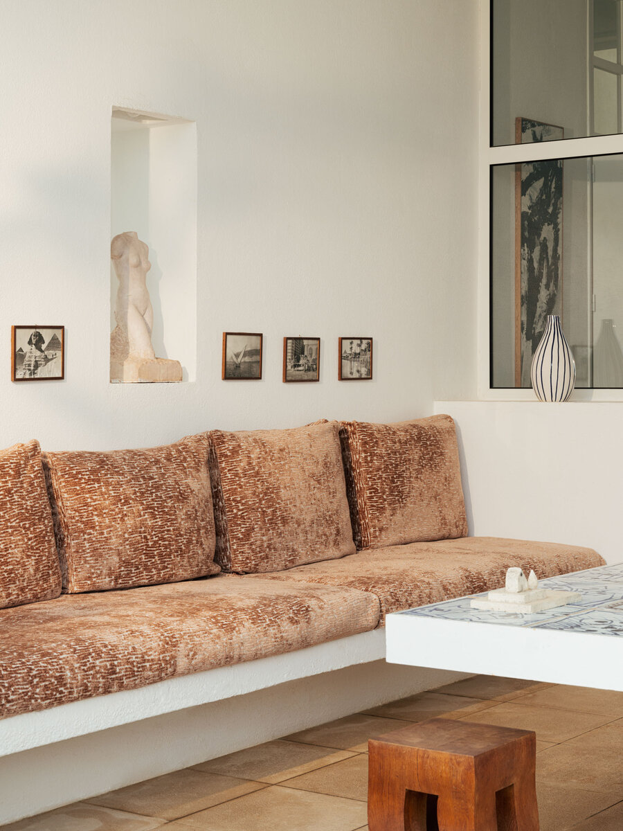 ARLES is a velvet woven in Belgium with a weft thread of bouclé yarn. Its stone-washed finishing roughens the pile to lend a shabby–chic look.