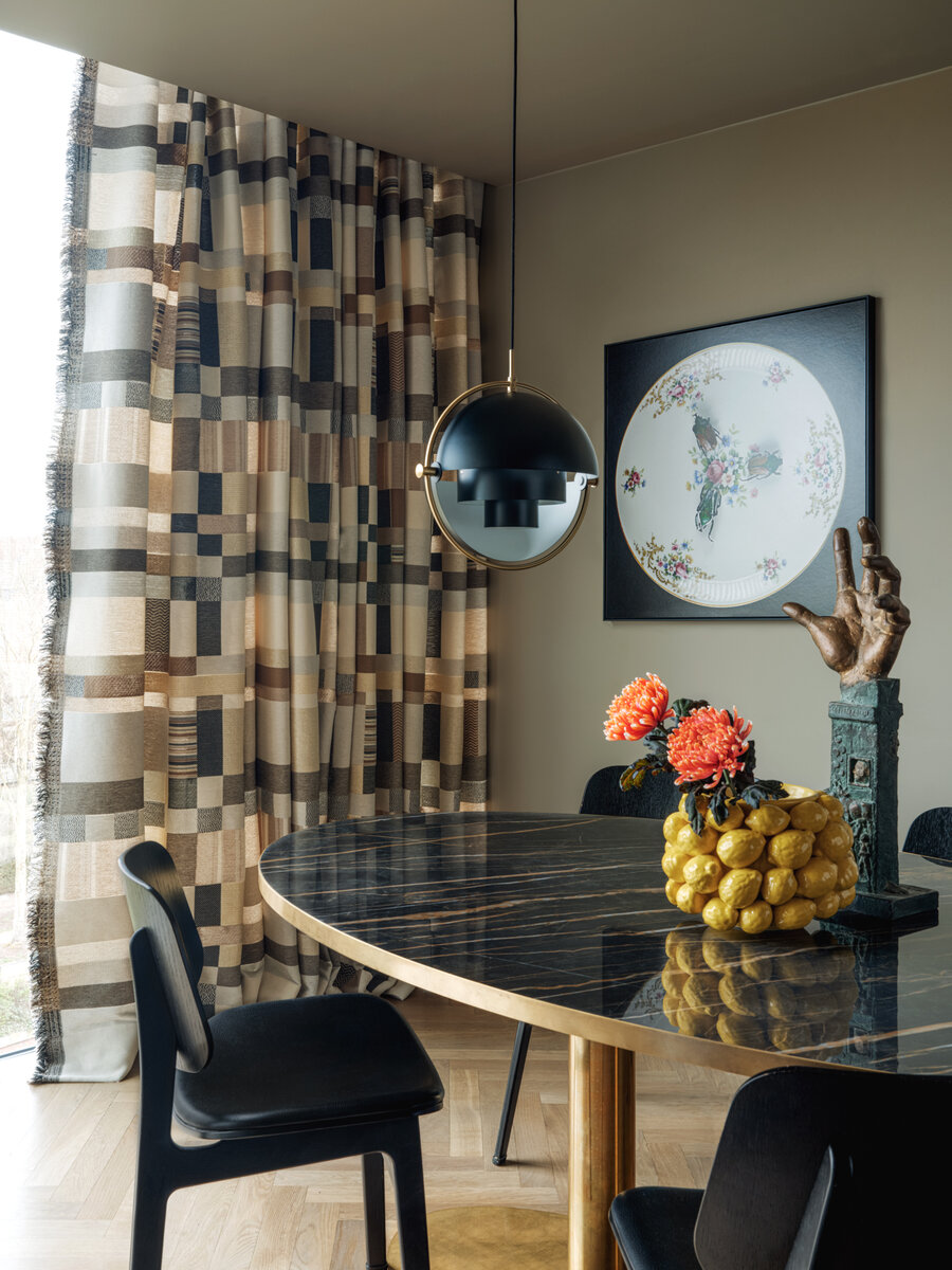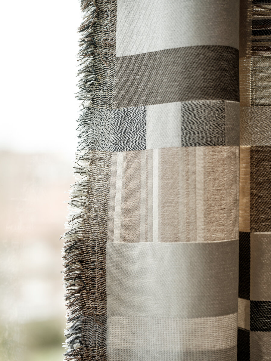 ATELIER embodies textile art of the highest caliber. Inspired by the tradition of woven carpets, this modern work of art was created as an exceptional decorative fabric. The geometric design is the result of multiple weaves and overlays of different yarns. The repeat extends across the entire width of the fabric and is finished off by a voluminous fringed edge on both sides.