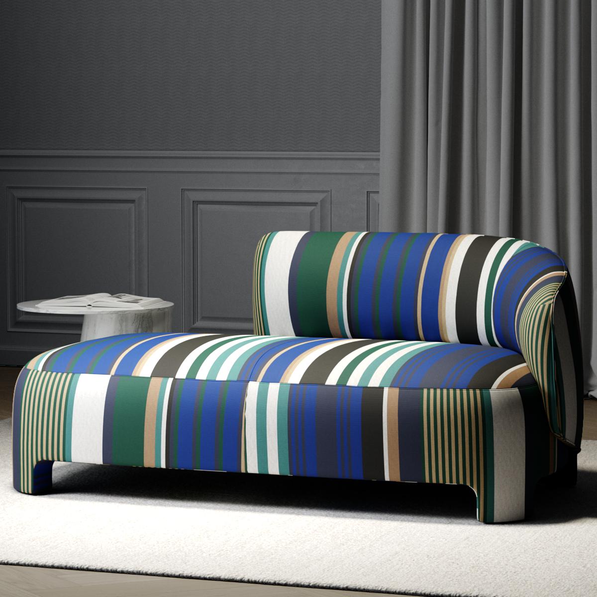 This Belgian-woven warp stripe is crafted with haute couture expertise. Made from 100% solution-dyed acrylic, it offers outstanding indoor/outdoor performance. Resistant to chlorine and saltwater, and highly colorfast to light and weather, BAIN DE SOLEIL combines technical excellence with a natural look—making it ideal for elegant indoor and outdoor spaces.