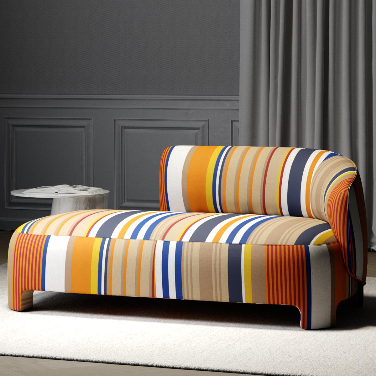 This Belgian-woven warp stripe is crafted with haute couture expertise. Made from 100% solution-dyed acrylic, it offers outstanding indoor/outdoor performance. Resistant to chlorine and saltwater, and highly colorfast to light and weather, BAIN DE SOLEIL combines technical excellence with a natural look—making it ideal for elegant indoor and outdoor spaces.