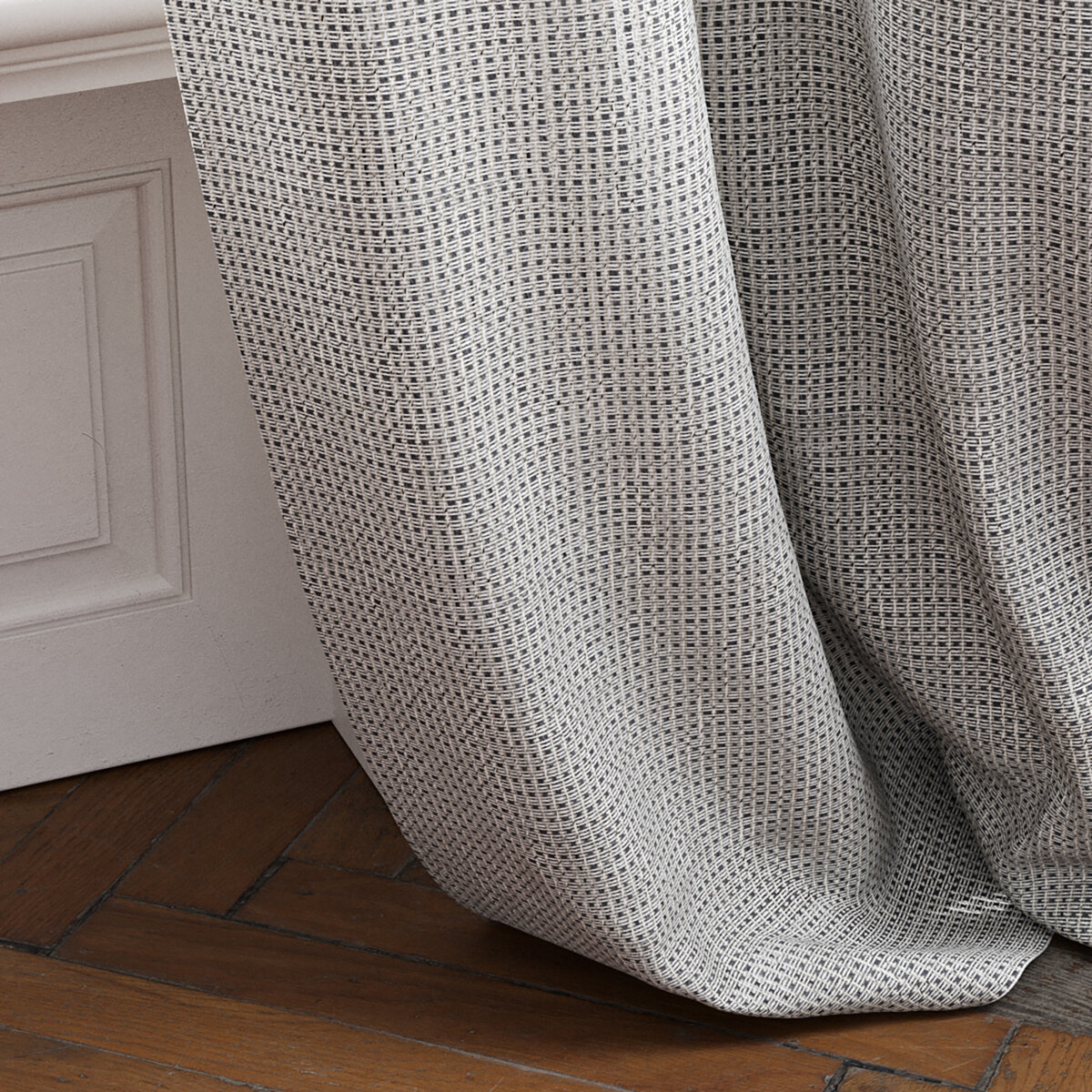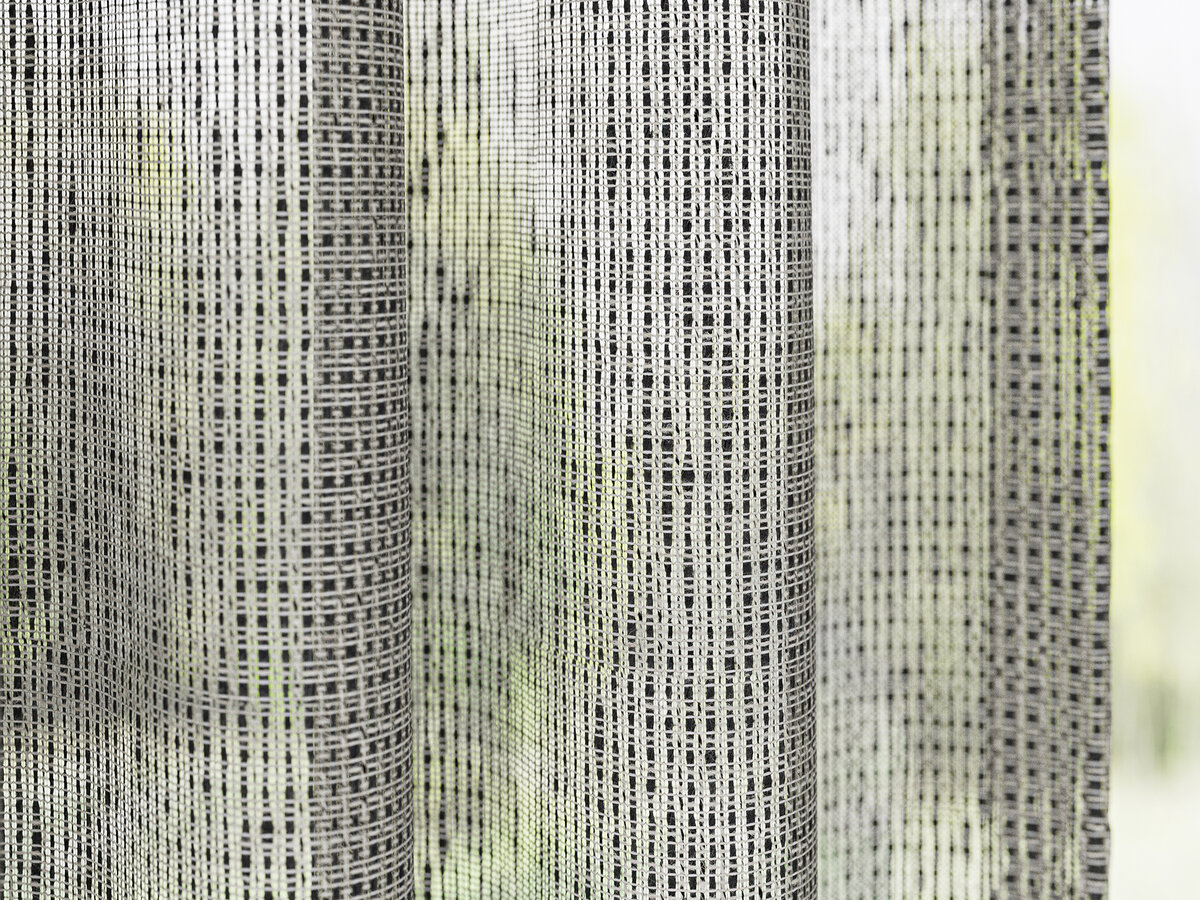 The floor-to-ceiling transparent fabric is reminiscent of a delicate basket weave. The charming combination of coarser and fine yarns gives the fabric a special texture and depth. The subtle nuances of the natural color palette blend perfectly into any environment and will bathe the room in a pleasantly soft light.