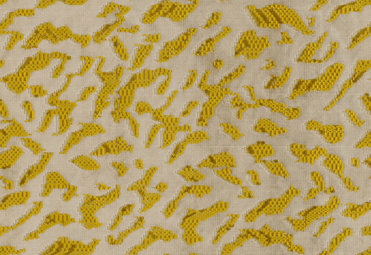 The organically abstract allover design evokes a range of associations – shimmering water droplets, the veining of a rare gemstone, or the coat of a wildcat – fluid, layered, and naturally elegant. Varying pile heights capture the light and transform it into soft tonal gradations. The result is a surface that shimmers differently from every angle – sometimes with a silky glow, sometimes with gentle depth. Available in twelve colorways, from radiant and fresh to deep and sophisticated, BLISS reveals itself as a velvet of shimmering refinement – a fabric that captures the fleeting beauty of a moment.
