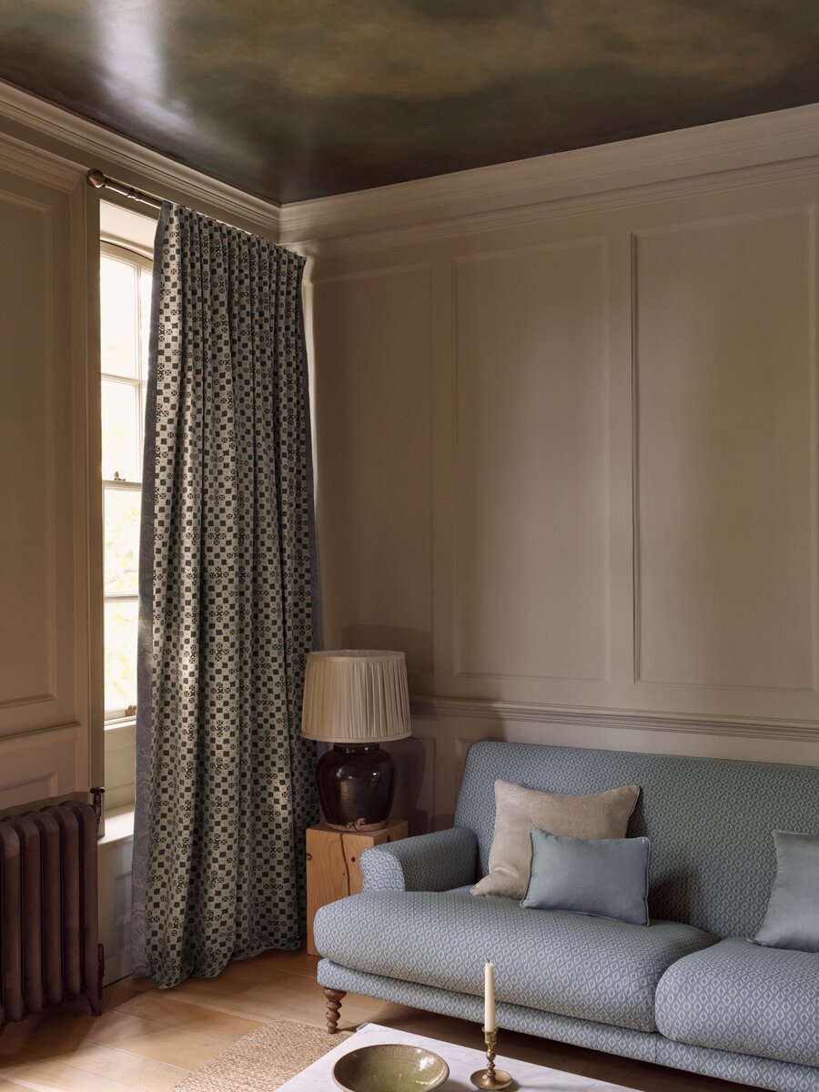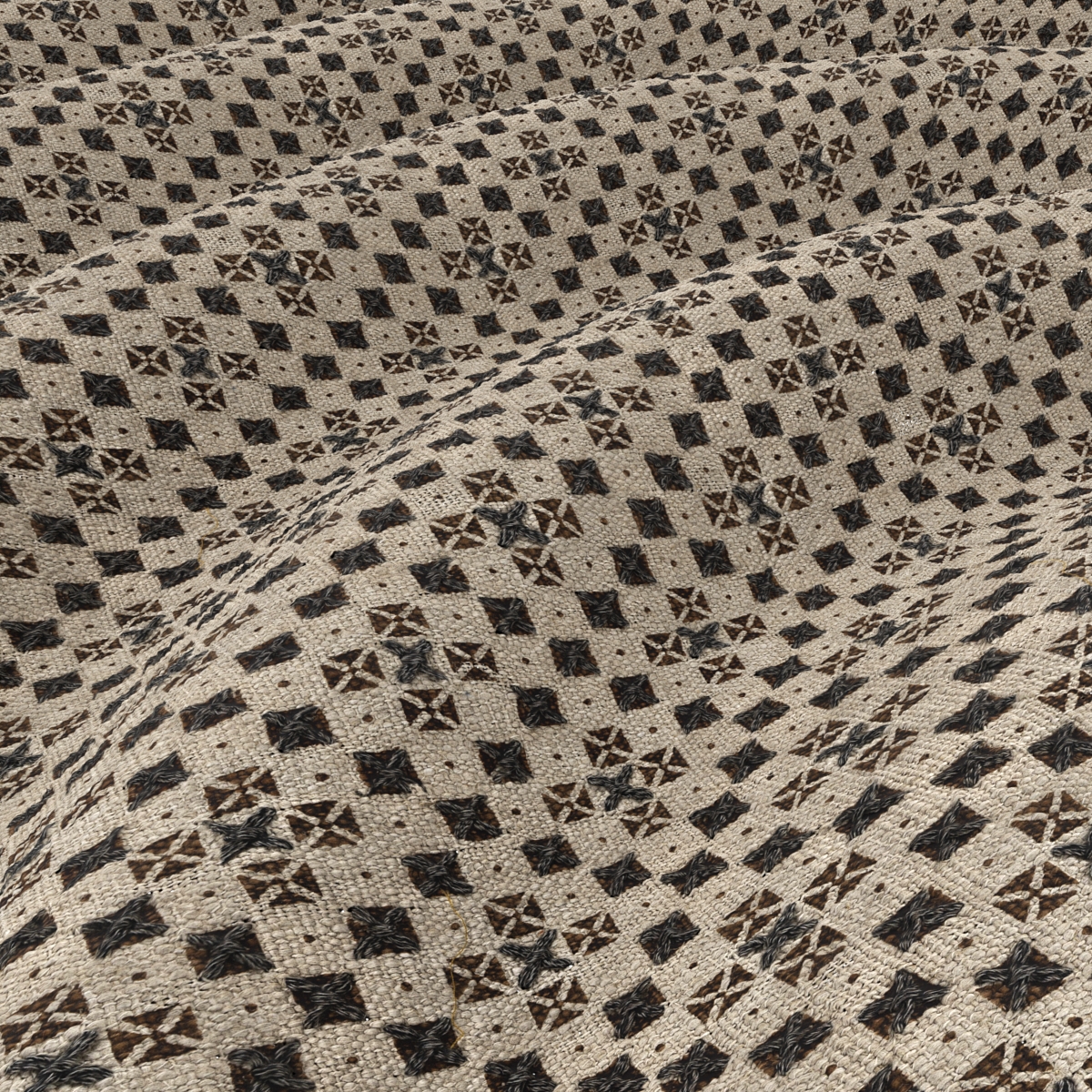 A creative hand-blocked geometric print on a slubbed linen-blend ground inspired by planting patterns in garden design drawings, ‘Boxwood’ is finished with hand embroidery in twisted cotton, creating loose, architecturally inspired patterns that dance across the cloth. The result is a highly textural and expressive decorative fabric with an intense character.